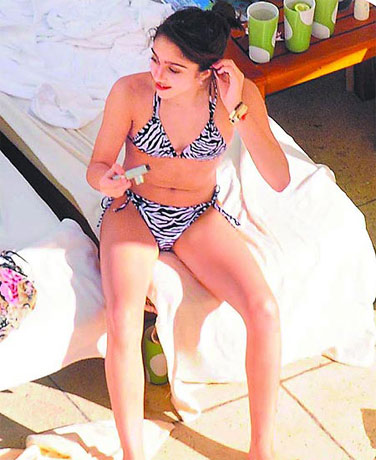 中新網(wǎng)12月9日電 “娜姐”麥當(dāng)娜赴南美巡演,女兒蘿狄絲跟著去玩,在飯店泳池畔日光浴。今年12歲的她剛開始發(fā)育,卻學(xué)好萊塢女星穿上比基尼秀身材。