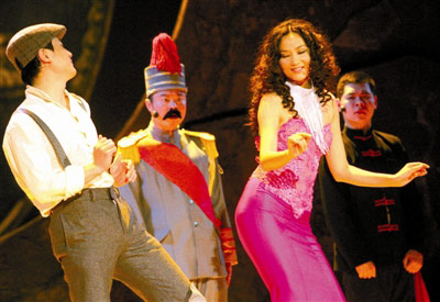 與瞿穎形成鮮明對(duì)比的是“赤壁大戰(zhàn)”中嗲聲嗲氣的小喬,嬌滴滴香港口音的她把曹操大人都帶得忘了普通話,只見赤壁大戰(zhàn)中的諸葛亮、周瑜等個(gè)個(gè)口音都像是西服革履的港商。(記者王菲)
