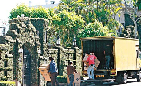 工人將在羅康瑞大宅搬走的幾箱物件,運回霍家位于沙宣道的大宅。