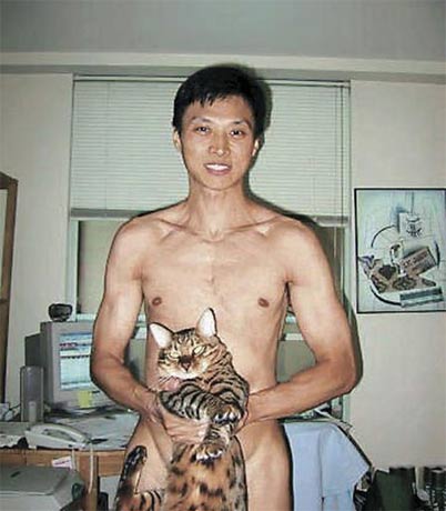05年倪震將抱著兩人愛(ài)貓“周慧豹”遮住重要部位的相片放上網(wǎng)分享。