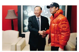 發(fā)行了京劇唱片《太真外傳》、《貴妃醉酒》的梅葆玖先生,昨天也如同“歌手發(fā)片”一般在滬上宣傳簽售。在現(xiàn)場遇到了同時正在為《非誠勿擾》做宣傳的馮小剛導演。兩人初次見面,相談甚歡。