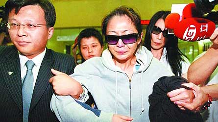 林曉培(右)去年酒駕肇事,戴墨鏡的她不斷向受害者道歉。