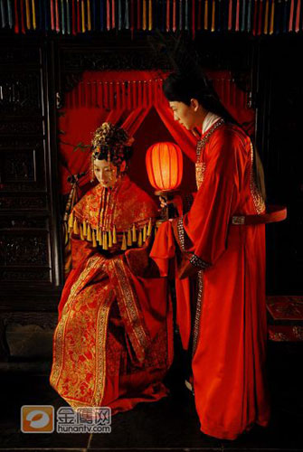 2009年元旦,新版電視劇《紅樓夢(mèng)》攝制組照常緊鑼密鼓地忙碌著,而這一天拍攝的戲份正是寶玉大婚。在北京廠的攝影棚內(nèi),寶玉房張燈結(jié)彩,一派喜慶氣氛。高懸大紅彩帳的堂前掛著三幅婚聯(lián):“彩筆喜題紅葉句 華堂欣詠采萍章”、“綠窗待月春調(diào)瑟 紅袖添香夜讀書”、“吐鳳雄才成博議 畫眉彩筆點(diǎn)新詩(shī)”。而當(dāng)天的婚俗禮儀據(jù)說(shuō)也是講究多多。寶玉寶釵拜堂異與旁人的三拜,而是四拜:一拜天地諸神,二拜賈母,三拜賈政王夫人,四為夫妻對(duì)拜……當(dāng)天參演的主要角色有王夫人(歸亞蕾)、薛姨媽(龔麗君)、尤氏(賈妮)、王熙鳳(姚笛)、賈政(許還山)、賈赦(李健)、賈珍(姜彤)、成年寶玉(楊洋)、成年寶釵(白冰)、成年惜春(徐行)、鴛鴦(蔡飛雨)、襲人(李艷)、鶯兒(方安娜)、平兒(程媛媛)、彩云(呂途)、雪雁(宣璐)等近30位演員,個(gè)個(gè)盛裝華服,喜氣洋洋。戲里戲外的喜慶氣氛聯(lián)成一片。李少紅導(dǎo)演笑稱“這個(gè)紅火的場(chǎng)面也算是新版《紅樓夢(mèng)》跨入09年的一個(gè)開門紅吧!