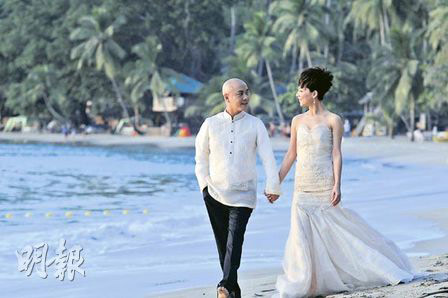 同時,一對新人昨日穿上菲律賓特色禮服,在沙灘漫步拍婚紗照,認(rèn)真浪漫。