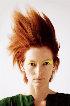 確實(shí),斯溫頓只是好萊塢商業(yè)片里的配角。但在歐洲,在獨(dú)立電影領(lǐng)域,她是真正的女王,是藝術(shù)電影創(chuàng)造者們夢(mèng)寐以求的繆斯。多年來(lái),她一直熱衷于和一些新銳導(dǎo)演合作嘗試各種試驗(yàn)電影,在藝術(shù)界享有很高的聲譽(yù)。早在1988 年,26 歲的斯溫頓便應(yīng)邀擔(dān)任過(guò)柏林電影節(jié)的評(píng)審團(tuán)委員。英國(guó)《獨(dú)立報(bào)》曾這樣評(píng)價(jià)這位身高1 米8、氣質(zhì)中性的女人:“她似乎根本不像是地球人,而另一方面,她又可以比你所想到的任何一個(gè)銀幕形象都要真實(shí)!