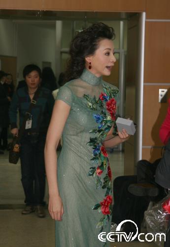 前幾次彩排,主持人一套衣服“一穿到底”,為了給除夕那天直播做準(zhǔn)備,今天以兩身衣服出鏡。董卿一開場以一套大紅色的露肩禮服出場,戴著一對兒紅色的長型耳環(huán),半場過后換成一條橄欖綠色的旗袍式長裙。兩身衣服都有中式的韻味在里面,喜慶之余顯得端莊親切。主持人朱軍準(zhǔn)備了一身黑色的西裝和一身金色的禮服。周濤由一身紅色的拖裙換成了一身藍(lán)色的禮服。據(jù)了解,在正式直播那天,主持人每人會換三身衣服,這次只是做個演習(xí)。