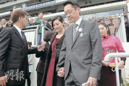 昨日是大年初七俗稱“人日”的喜慶日子,許家名下有3匹愛駒出戰(zhàn)沙田馬場,昨午李嘉欣與丈夫許晉亨十指緊扣步入馬場。一向身形纖瘦的嘉欣身穿紅色背心連身裙,腳踏兩吋高跟鞋,外表明顯比婚前發(fā)福,腹部的小肚腩亦若隱若現(xiàn),加上全身鉆飾行頭,完全是一副幸福少奶奶模樣。
