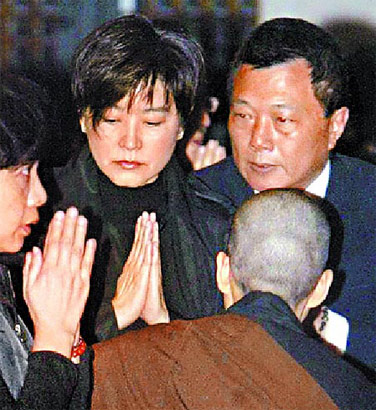 中新網(wǎng)2月5日電 林青霞昨下午返臺吊唁結(jié)緣9年的法鼓山創(chuàng)辦人圣嚴(yán)法師,她笑容凝結(jié)、少了光彩,一身黑衣素服、脂粉未施,露出紅腫雙眼、浮腫眼袋,一下飛機(jī)直奔金山總本山大殿瞻仰法相,她雙手合十行跪拜大禮、深磕頭3次,起身時步履蹣跚,彷佛失了魂,哀戚神色令人不舍。她短暫來臺5小時,參拜完師父法相后旋即返港,預(yù)計下月返臺。