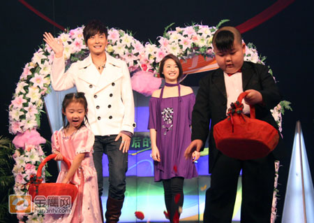 節(jié)目開始錄制,演播廳響起浪漫的結(jié)婚進(jìn)行曲,在可愛的小伴郎、伴娘的帶領(lǐng)下,鄭元暢、林依晨踩著伴郎、伴娘揮灑的玫瑰花瓣,浪漫登場。也成為《背后的故事》節(jié)目中,第一個(gè)踩著玫瑰花瓣上場的嘉賓。