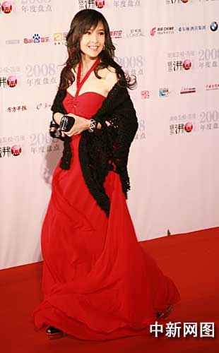 中新網(wǎng)2月19日電 2009年初嫁給倪震的女星周慧敏,今日在國(guó)家游泳中心水立方以一襲鮮紅的低胸紗裙配黑色披肩,亮相第二屆湖南衛(wèi)視•百度娛樂(lè)沸點(diǎn)2008年度盤(pán)點(diǎn)典禮紅地毯。這是她婚后首次亮相內(nèi)地公開(kāi)活動(dòng)。