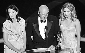 本屆奧斯卡頒獎禮最感動的瞬間有兩個,一是紀念單元放出保羅·紐曼的照片時,現(xiàn)場唏噓一片。另一次,則是希斯·萊杰憑借“小丑 ”一角拿下最佳男配角獎的時候。當然,已經(jīng)逝世的萊杰沒法親身領(lǐng)獎了,他的前女友米歇爾·威廉姆斯與女兒馬蒂爾達也沒出現(xiàn),代替希斯上臺領(lǐng)獎的,是他那年邁的父母以及姐姐。希斯的姐姐穿起高跟鞋和緊身晚禮服走起路來就稍微有點踉蹌,父親掏出事前準備好的小紙條念出感謝詞的瞬間,底下的賓客全體起立致敬,向這三位失去親人的好萊塢局外人致敬。這時鏡頭帶到溫斯萊特,她兩眼淚花閃閃……