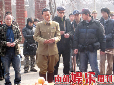 高群書(shū)的電影處女作《東京審判》曾獲得了廣泛的好評(píng),而在此之前他曾拍攝了大量的刑偵劇,其中最成功最有名的就是孫紅雷主演的《征服》。記者從劇組的拍攝通告上發(fā)現(xiàn)正月十六這一天拍攝的是王志文審訊女刺客的戲,而扮演女刺客的是《征服》的女主演劉威葳,去年劉威葳曾主演了王小帥的影片《左右》。兩年多前《征服》火爆熒屏的時(shí)候,就有圈內(nèi)人士告訴記者,劉威葳就是導(dǎo)演高群書(shū)的女友,兩人已相戀多年,早在高群書(shū)的那部主要由非職業(yè)人員出演的系列劇《命案十三宗》中劉威葳就出演過(guò)其中的一集。記者在片場(chǎng)看到劉威葳梳著三十年代流行的女性的“雞窩”發(fā)型,穿著一件破爛的染著“血跡”的裙子,據(jù)一位知情人士向記者透露,劉威葳扮演的女刺客雖然戲份不多,但很重要,影片的一開(kāi)場(chǎng)就是她刺殺日本要員的重頭戲,因?yàn)樗?fù)傷被俘,才意外使日軍懷疑內(nèi)部有間諜,從而展開(kāi)調(diào)查。