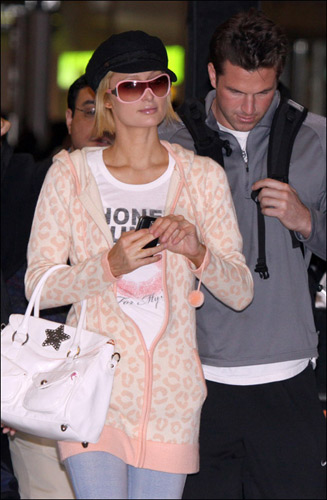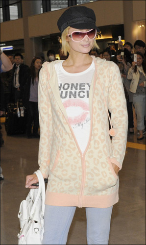 話題女王帕麗斯·希爾頓再次甜美出擊,這次去日本東京為自己的產品做宣傳的帕麗斯·希爾頓甜美無比,黑色的畫家帽歪帶,粉色邊框的墨鏡搭配嫩嫩的粉色開衫外衣和最流行的嘴唇印記短袖衫,甜美的像是17 18歲的少女。看到剛剛過完28歲生日的帕麗斯·希爾頓還要繼續(xù)可愛下去。