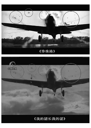 《團長》前兩集中描繪孟煩了、迷龍等川軍團成員乘坐運輸機前往緬甸時,遭遇日軍襲擊而墜機的情節(jié),首日播出之后,便有眼尖的觀眾發(fā)現空中飛行的鏡頭和墜機的鏡頭和《珍珠港》相似。昨日,有觀眾貼出了全部的比較圖,其中十余幀畫面和《珍珠港》如出一轍,甚至連駕駛艙的構造和艙內細節(jié)都是一模一樣。觀眾紛紛質疑《團長》從電影中直接截取了相關鏡頭。