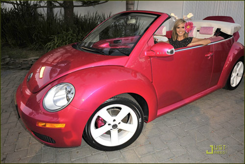 海蒂·克拉姆化身性感芭比 開粉色甲殼蟲車(圖)(2)