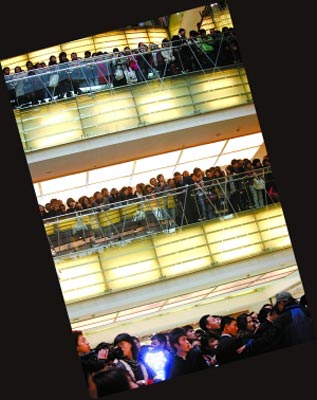 雖然阿嬌的普通話還是那么糟糕,就連她自己也承認不太會說話,有些問題仍需經紀人霍汶希代答,但無可否認的是,單就昨日阿嬌的表現(xiàn),媒體一致認為她的表達水平以及應對媒體的公關技巧大幅提升。提到前一日粉絲接機的場面,阿嬌直言:“我沒有想到會有那么多人支持我,還有媒體記者們。有件事我感到很抱歉,因為我的出現(xiàn)引發(fā)場面混亂,有的歌迷跌倒了,有的記者掉了手機,我感到非常抱歉。”面對現(xiàn)場幾十人的橙色粉絲團,阿嬌一度哽咽道:“很開心再次來北京,我很想看奧運會,真遺憾錯過了。但我最想念的就是北京的歌迷,真的很感動!北姼杳月劼牬搜裕薪M織地高喊:“阿嬌,我們永遠支持你!”在粉絲的聲浪中,商場一層到頂層的樓梯和回廊上都擠滿了人群,場面煞是壯觀。