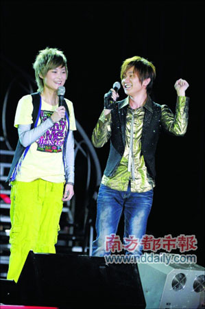 林俊杰成為了本場演唱會的神秘壓軸嘉賓。他不僅帶來了自己的《小酒窩》,還在臺上和李宇春同場競技,表演火爆動感的斗舞。林俊杰手拿道具槍連番向四周掃射,氣勢不遜江湖大哥;李宇春一身運動裝扮,在蹦床上展示動感青春舞姿。二人默契的配合和各自的精彩演繹掀起了演唱會的高潮。記者 齊帥 實習(xí)生 史迎利
