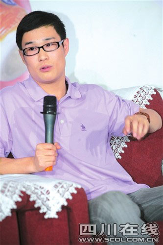 當書卷氣十足的“小沈陽”上臺向觀眾鞠躬時,現場立即爆發(fā)出熱烈掌聲。女主持首先教“小沈陽”學說幾句成都話“好巴適哦!“巴適得板!”“巴適得慘”!“巴適得憨!”僅教了兩次,“小沈陽”就一口氣用正宗四川話說出來,逗得現場觀眾和記者哄堂大笑。緊接著,女主持又讓“小沈陽”跟她現場學唱四川民歌《康定情歌》!靶∩蜿枴本挂浴岸宿D”的形式翻唱,現場又是一陣笑聲。