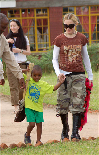 周日(3月29日)麥當(dāng)娜帶著她的兒子大衛(wèi)班達(dá)走訪了馬拉維的Kabbalah學(xué)校,母子倆都穿得很休閑、隨性。麥當(dāng)娜一身咖啡色的短袖衫,迷彩褲配黑色軍靴,帥氣十足。麥當(dāng)娜來(lái)馬拉維的目的就是為了處理一些領(lǐng)養(yǎng)當(dāng)?shù)?歲女孩Mercy的相關(guān)事宜。Mercy的母親在生下她之后就過(guò)世了,年僅18歲。