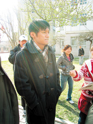 “我早晨起來的時(shí)候在樓里看到了余文樂,能夠這么近距離的看到大明星的模樣,我當(dāng)時(shí)興奮極了!闭勂鹪绯康囊荒,一位圍觀的年輕女孩兒仍舊顯得非常激動(dòng),但她的情緒卻并沒有影響到周圍的人,“看到余文樂之后,我馬上跑去告訴我的朋友,但因?yàn)榻裉煺檬怯奕斯?jié),所以大家根本不相信我說的話,都以為我在跟他們開玩笑!弊詈笈哼遺憾地表示,早知道當(dāng)時(shí)就應(yīng)該拿手機(jī)拍下來,這樣就不會(huì)被別人誤會(huì)她說的是一個(gè)愚人節(jié)玩笑啦。