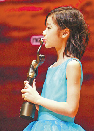 在《長江七號》中有著出色表演的杭州小姑娘徐嬌,終于獲得了最佳新演員獎。而給她頒獎的竟然也是杭州的姑娘湯唯,這是湯唯自去年來最正式的一次公開亮相。著一身紅裙的她,留了一個特大的留海,顯得很特別。徐嬌昨晚恢復了“女兒身”,穿上了綠綠的裙子,在臺上感謝“老爸”周星,稱自己終于獲得了一百分。乖巧的她在現(xiàn)場人見人愛,主持司儀都和她擁抱。