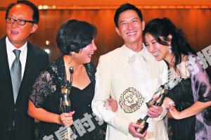 張家輝隨后在接受著名主持人查小欣的訪問時(shí)表示,以后不會(huì)再帶著妻子參與奪獎(jiǎng),不過仍很甜蜜地說,“其實(shí)頒獎(jiǎng)前她比我還緊張,宣布時(shí),她使勁握著我的手,險(xiǎn)些把我的手都握斷了,得知獲獎(jiǎng)后我就和她來了一個(gè)長長的擁抱!