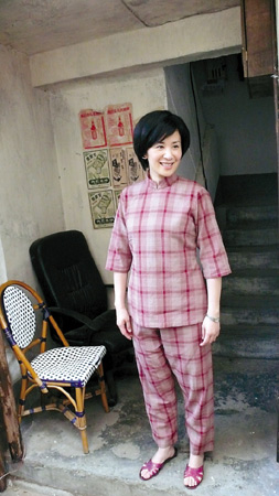 吳君如則比較顯眼,她穿著一身紅格子老式服裝,頭發(fā)是特意粘的假發(fā),很茂盛地搭在額前。她的腳上跟任達華一樣蹬著塑料拖鞋,身材看上去略有些發(fā)福。吳君如的妝化得挺濃艷,看上去跟環(huán)境有點不搭調。任達華卻十分自在,到處跟人聊天,演他們兒子的小演員———在《大搜查》里演陳奕迅兒子的鐘紹圖遠遠跑過去,很響亮地喊他“老竇”,他也很從容地回了一聲“哎”。