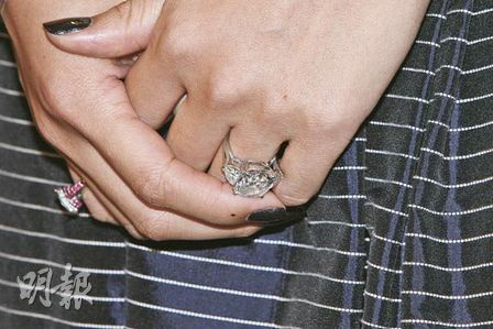 據(jù)香港《明報》報道,章子怡專程赴港參加代言活動,她穿著價值7000元(港幣,下同)的吊帶衫裙,左手無名指繼續(xù)戴上她最愛的10克拉巨型鉆戒,右手尾指亦戴上另一款巨型鉆戒,再配以鉆石手鏈大曬幸福貴氣。貴為國際影星的她,全程戴上太陽眼鏡,由她現(xiàn)身到訪問結(jié)束離開,只有10分鐘時間,而她身邊除經(jīng)理人、助手外,還有10名保安護駕,盡顯大明星風(fēng)范。活動于中午舉行適值午飯時間,吸引好多市民駐足觀看。