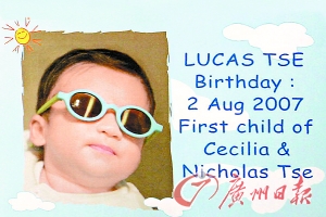 09年的愚人節(jié),張柏芝抱愛(ài)子追憶張國(guó)榮,悼念片段中更抱起Lucas出鏡,又兩度問(wèn)兒子“這部戲誰(shuí)做呀?”,小Lucas響亮地答:“哥哥!”十分可愛(ài)。
