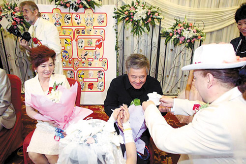 婚禮顯得十分節(jié)儉,選擇在一家四星級(jí)酒店舉行,筵開(kāi)10席,只邀請(qǐng)了包括趙本山在內(nèi)的親朋好友,連新娘子的化妝都是由贊助商“買單”。在婚禮現(xiàn)場(chǎng),一對(duì)新人的婚紗照被做成真人大小的展架,其中既有經(jīng)典的西裝婚紗照,也有頗具中國(guó)傳統(tǒng)風(fēng)格的大紅喜服裝束。據(jù)了解,博比·肯出生在烏克蘭一個(gè)藝術(shù)世家,2001年,他在電視上看了趙本山的小品,“被其深厚的藝術(shù)功底所折服”,通過(guò)熟人介紹,正式拜趙本山為師。博比·肯表示,他1992年來(lái)到中國(guó),立刻被這里古老的文明所吸引,因此,他一早就與新娘張?chǎng)╂眠_(dá)成了共識(shí):“我們要辦一個(gè)地地道道的中式婚禮。”