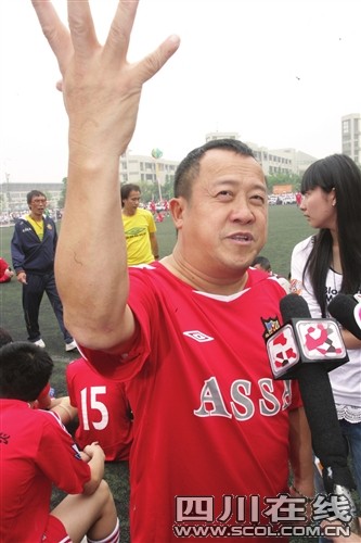 昨日下午,位于地震重災(zāi)區(qū)的什邡中學(xué)體育場(chǎng)熱鬧非凡。一場(chǎng)由譚詠麟率領(lǐng)的香港明星足球隊(duì),與孫楠率領(lǐng)的夢(mèng)舟明星足球隊(duì)之間的足球賽正式開鑼。曾志偉、成奎安、羅家英、陳百祥、何家勁、洪金寶之子洪天明以及白巖松、景崗山,羽泉、文章、吳京、黃格選、陶偉等30多個(gè)影視歌明星輪番上陣,爭(zhēng)搶激烈。譚詠麟、曾志偉帶頭當(dāng)老頑童玩得盡興,明星們還在比賽間隙穿插文藝表演,讓觀眾無(wú)比激動(dòng)。