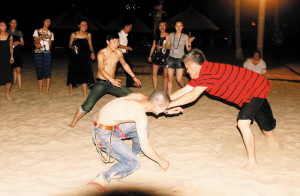 本山的好人緣在圈里是公認(rèn)的,張藝謀曾在記者面前評(píng)價(jià)趙本山是“絕對好人”。在徒弟面前,趙本山同樣也是他們的朋友和哥們兒。在海南巡演期間,記者感受到了本山和徒弟的親密無間,在飯桌上,徒弟們和本山推杯換盞就像是朋友。此時(shí),本山也沒有平時(shí)的架子,他會(huì)和大家談笑風(fēng)生,整個(gè)演出團(tuán)隊(duì)打成一片。無論是誰,只要有演出、生活的問題,本山肯定耐心勸慰,讓他們拋開顧慮。興致來了,本山還會(huì)不顧年齡的差異和徒弟們在沙灘上摔上幾跤。男孩子可以和師父摔跤,但女孩子都希望與本山合影,面對著一望無際的大海,女演員和舞蹈隊(duì)的姑娘們提出了與本山合影的要求。本山對孩子們的要求不會(huì)拒絕,他甚至?xí)鲃?dòng)弓下身子遷就個(gè)子稍矮的女孩子。當(dāng)十多張照片拍完之后,記者明顯看到本山有了疲憊的跡象,于是提出“讓趙老師歇會(huì)兒再拍吧”,但本山堅(jiān)持和每個(gè)演員照完!半y得有這樣的機(jī)會(huì)和大伙玩,都是自己人。”輕描淡寫的一句話,迅速拉近了自己和演員們的關(guān)系。
