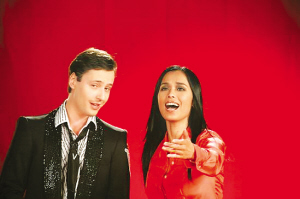 韋唯與維塔斯在錄音棚初次見面氣氛就相當(dāng)融洽,盡管兩人語言不通,但維塔斯施展的耍寶逗樂功夫讓韋唯忍俊不禁。兩人面對鏡頭進(jìn)入狀態(tài)很快,尤其是在對唱時更加自然親近。記者 俞亮鑫