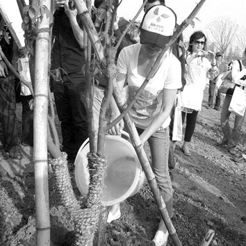 5月5日,世博會(huì)“綠色出行大使”周迅與世博局領(lǐng)導(dǎo)、媒體朋友赴上海辰山植物園,一同種下了世博綠色出行林。同時(shí),她還出資捐贈(zèng)了233棵樹,成為世博林首個(gè)捐贈(zèng)者。