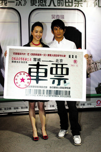 號稱2009年第一部華語親情片的電影《車票》定于今日登陸全國影院。昨日片方在北京召開發(fā)布會,導(dǎo)演張之亮攜主演左小青、吳奇隆亮相,為這部在母親節(jié)上映的影片宣傳造勢。
