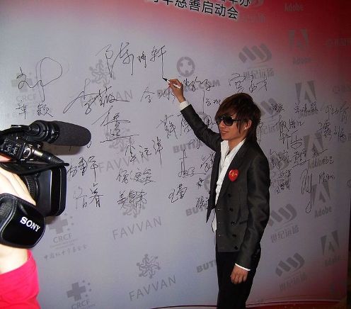 中新網5月8日電 5月7日,備受矚目的新人歌手陳爍軒和歌手李琛一起出席了由世紀遠洋主辦、ADOBE和中科希望協(xié)辦的紀念汶川地震一周年慈善活動;顒又,陳爍軒和李琛作為慈善拍賣大使為拍賣品簽名,并呼吁大家熱心慈善,關愛生命。
