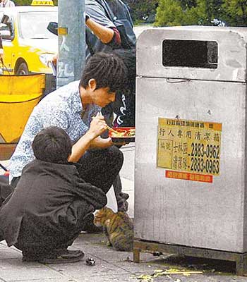 中新網(wǎng)10月18日電 周渝民(仔仔)昨?yàn)樾聭颉对谶@里等你》在臺(tái)灣拍外景,他近來(lái)常被傳得憂郁癥,精神狀況總被人大作文章,昨記者目擊仔仔肚子餓了,直接蹲在垃圾桶旁邊吃便當(dāng),吃得津津有味,剩下的剩菜也沒(méi)浪費(fèi),分給流浪貓吃,十分有愛(ài)心。接著精神奕奕與女主角關(guān)穎對(duì)戲。
