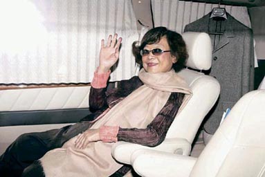 中新網(wǎng)10月19日電 “肥姐”沈殿霞前日出院返家休養(yǎng),愛熱鬧的她昨午出動與好友聚會,為免被傳媒追訪,她改乘陳淑芬的座駕,并拉上窗簾掩人耳目,直至晚上8時才回家,心情不錯的她拉開窗簾讓記者拍照;藠y的肥姐精神甚佳,還笑著向鏡頭揮手。
