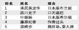 日本一家網(wǎng)站請網(wǎng)友票選“最討人厭女星”排行,澤尻英龍華不負眾望,擊敗藤原紀香、濱崎步等人封后。