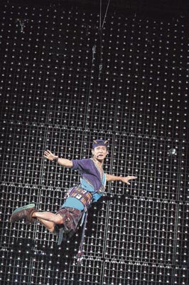 演唱會進(jìn)行期間,華仔唱《愛你一萬年》時吊鋼絲于半空表演360度轉(zhuǎn)圈動作,但他轉(zhuǎn)得太大力而失去平衡,華仔試圖用腳扣著鋼絲穩(wěn)定身體,但反被鋼絲纏腳倒吊半空,臺下歌迷嚇得驚叫,幸好最后他安然無恙落地。其后他與女舞蹈員在臺邊跳舞,不慎被公仔撞到險(xiǎn)墮臺,女舞蹈員及時拉住他才沒事。
