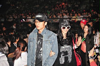 據(jù)臺灣聯(lián)合報報道,張柏芝與謝霆鋒抱著兒子姍姍來遲,陳奕迅演唱會開場時才現(xiàn)身,張柏芝穿著一身黑色寬松衣服,頭戴黑色骷髏骨頭布巾及大墨鏡,手上拎著大紅LV包包,手挽著謝霆鋒走到VIP區(qū),短短路程成為焦點,心情愉悅的柏芝,不斷與觀眾揮手致意,柏芝中途離場,經紀人強調她沒懷孕,只是腸胃炎不舒服。