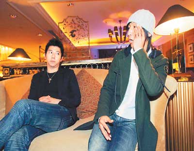 昨晚,受某演出商之邀,羽泉到重慶進(jìn)行一場(chǎng)商演。胡海泉下午已經(jīng)提前到達(dá),而由于陳羽凡的班機(jī)比較晚,和記者的采訪也約在了晚上7點(diǎn)半。沒(méi)想到過(guò)了8點(diǎn),一身休閑打扮的羽泉才一起出現(xiàn)在酒店大堂,羽凡戴了頂灰色的絨線帽,有點(diǎn)風(fēng)塵仆仆的樣子,好像心情還不太好。坐了幾分鐘,一臉不快的羽凡終于憋不住了,原來(lái)遲到是因?yàn)閯倓偮飞铣隽它c(diǎn)意外,“我們的車剛剛被追尾了,那些人還打傷了我的司機(jī)。”
