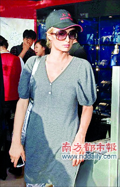 在上海成為風(fēng)頭躉的帕麗斯·希爾頓,在奪得MTV壓軸獎(jiǎng)項(xiàng)“國際年度時(shí)尚人物”大獎(jiǎng)后,于前日終于完成上海之旅,收獲甚豐的她行李多多,還主動(dòng)向記者打招呼才上車去機(jī)場。在機(jī)場,帕麗斯購物癮大發(fā),到免稅店買了“上!泵贝魃喜诺菣C(jī)回國。(中和)