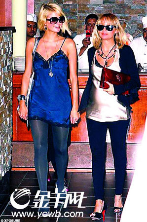 雖然帕麗斯衣著暴露,但是,里面的藍色內衣讓她還算不上完全暴露,緊身內衣對她多少起到了一些保護作用,與她同行的還有她的妹妹妮基·希爾頓。帕麗斯剛從中國歸來便約見妮可,并在貝弗利山莊的“福特”飯店共進午餐。