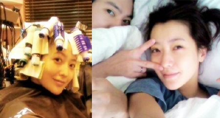 5日下午,金喜善把清晨剛醒時(shí)與丈夫一起躺在床上的照片放到了自己的“迷你小窩”博客中。照片中的金喜善雖然是一幅還沒睡醒的面容,嘴角卻掛著甜美的微笑。她在留言里撒嬌地說:“被電話鈴聲催醒了。本來可以再睡一會兒的……”,讓人忍俊不止。