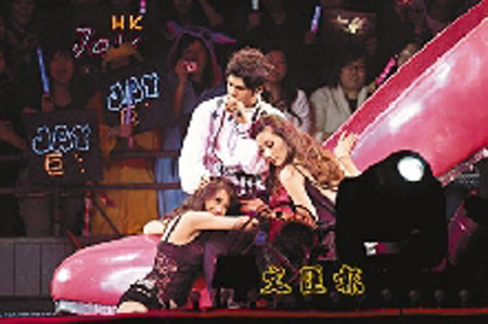 據(jù)香港文匯報報道,“周杰倫2007世界巡回演唱會”香港站的七場演出已于前晚大功告成,周杰倫獻唱《夜曲》時,名模姚書軼和另一性感舞蹈員從旁伴舞,她們不停做出誘惑動作,不僅掃摸他身體,更甚是伸手在周杰倫的大腿內側位置掃過去,差點觸及周杰倫重要部位,周杰倫被嚇得用手撥開對方。最搞笑是立刻以手掩護住下,可能周杰倫給熱情的女伴舞者所帶動,隨之開放起來,當女伴舞者把頭躺在周杰倫的大腿時,他索性把對方的頭按下,差點觸碰到下體,令現(xiàn)場觀眾叫囂不絕。