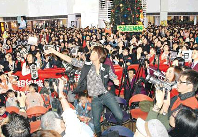 昨午在新港城中心舉行簽唱會(huì)的Danson大耍迷人功,當(dāng)Fans大膽贊他的臀部夠翹,他即說(shuō):“你碰過(guò)還是你看過(guò)?上次在機(jī)場(chǎng)摸我那個(gè)人是不是你?”他又細(xì)心安慰在臺(tái)邊感動(dòng)流淚的Fans。收到Fans送上豬仔儲(chǔ)錢罐時(shí),他還笑問(wèn)Fans是不是當(dāng)他是豬,F(xiàn)ans說(shuō):“我當(dāng)你是寶貝豬呀!”對(duì)于熱情的Fans,Danson大為感動(dòng),謙虛地表示視羅志祥和小綜為前輩,不會(huì)比較簽唱會(huì)成績(jī)。