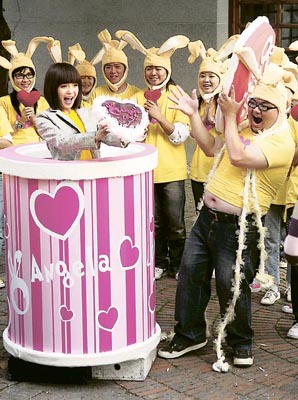 中新網(wǎng)1月3日電 張韶涵近日拍攝新歌《頭號甜心》MV,除了找來20多人扮求愛天使外,一向眼大大的她化上桃紅眼影,電力強勁,她笑言要趁機招惹桃花,找到真命天子。莫非她要趁機撇甩緋聞男友吳尊?