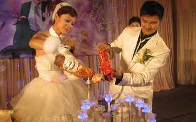 在草原上有一個(gè)傳說(shuō),如果找到了七瓣雪,將會(huì)找到自己一生最愛(ài)的人。這個(gè)傳說(shuō),讓田亮和葉一茜都非常向往。他們以"七瓣雪"為主題的婚禮盛大浪漫。正如許多女孩子一樣,一個(gè)嫁給心儀王子的婚禮讓自己感動(dòng)落淚,身經(jīng)百戰(zhàn)的田亮在這個(gè)陌生的舞臺(tái)竟然有些無(wú)措。