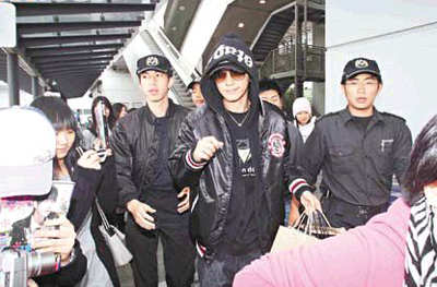 據(jù)香港太陽報(bào)報(bào)道,昨晨10時許小豬抵港,歌迷不怕寒冷天氣前往接機(jī),并舉起“亞洲舞王”紙牌迎接偶像,包著頭的小豬在助手陪同下出閘,歌迷即一擁而上將他圍住,唱片公司特別安排了4名保安開路,小豬此行只留港3日,但工作人員推著6大箱行李緊隨,問到小豬是否很疲倦?他笑著說:“OK啦!”由于昨日不是假期,小豬接過歌迷的禮物后,即緊張地說:“你們不用上學(xué)?請假了嗎?”歌迷沒有回答,但小豬仍表現(xiàn)親民,與歌迷打成一片,有講有笑。
